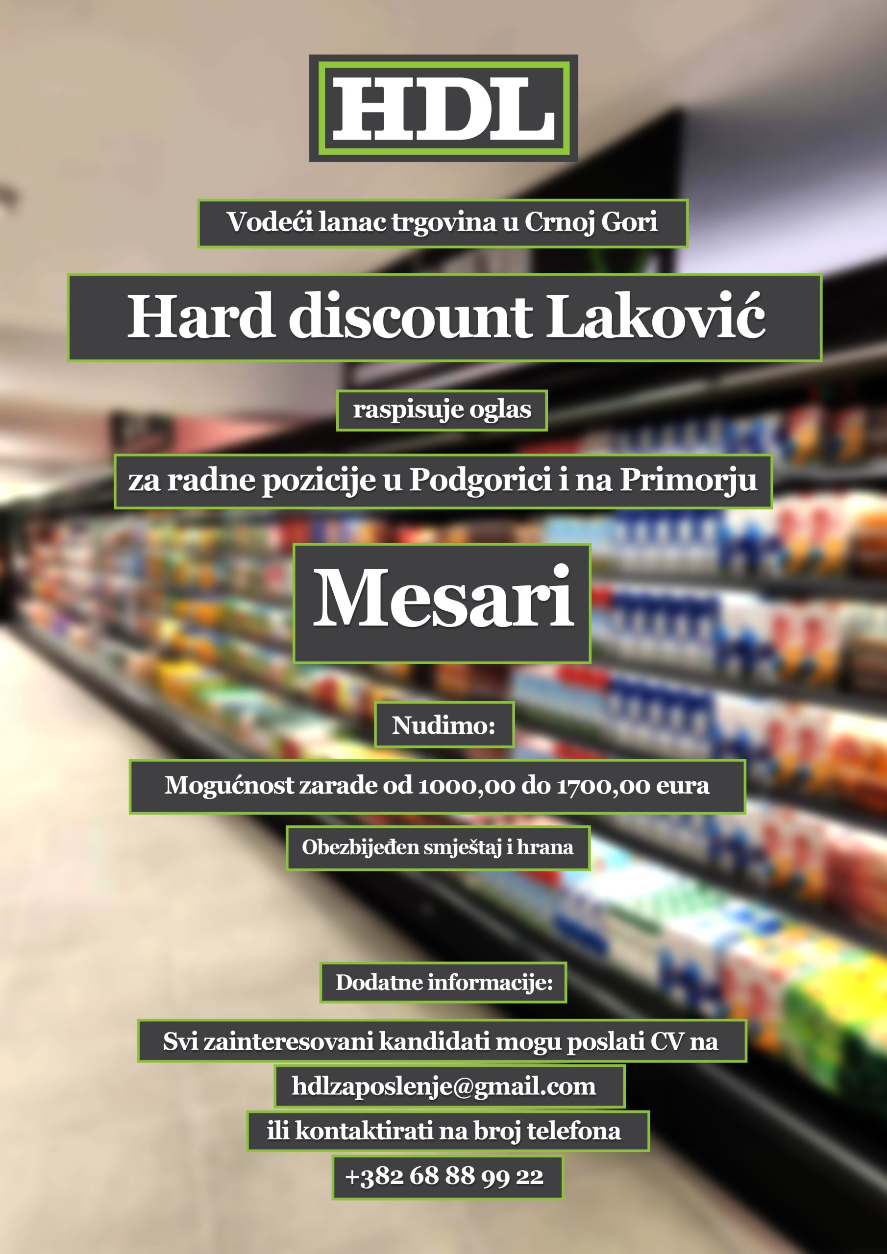 Vodeći lanac trgovina u Crnoj Gori, Hard Discount Laković, raspisuje konkurs za radna mesta:
